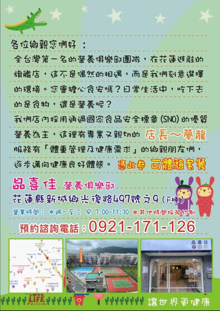 人生不長只有三萬天,最大的天命,就是照顧好自己,不給家人擔心,行有餘力連同家人一起照顧他們的健康;想減個3-10公斤體重,透過營養投資自己的健康;可以洽詢「晶喜佳」店長的Line連繫�https://line.me/ti/p/3yZXb1MHuT